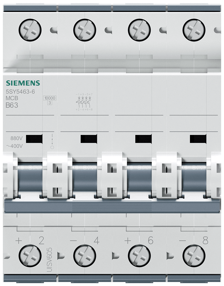 SIEMENS - Interruttore magnetotermico corrente universale DC 880 V AC 400 V 10 kA, a 4 poli, B, 63 A