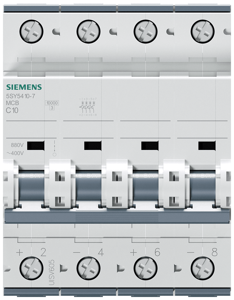 SIEMENS - Interruttore magnetotermico corrente universale DC 880 V AC 400 V 10 kA, a 4 poli, C, 10 A 5SY54107
