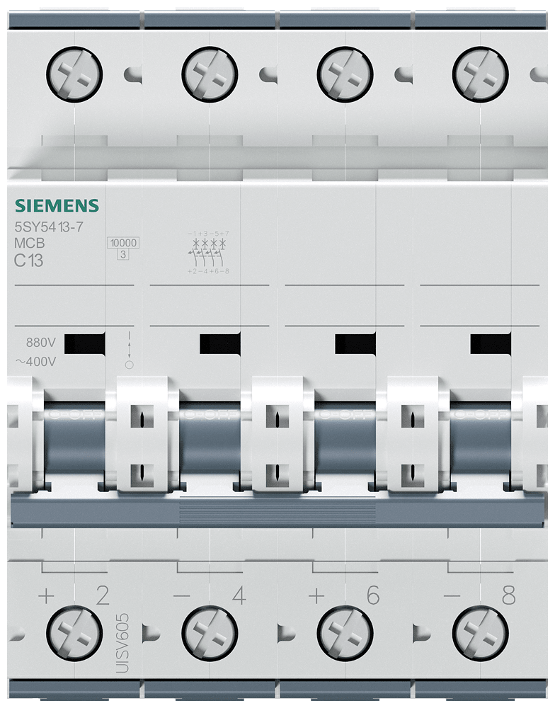 SIEMENS - Interruttore magnetotermico corrente universale DC 880 V AC 400 V 10 kA, a 4 poli, C, 13 A 5SY54137
