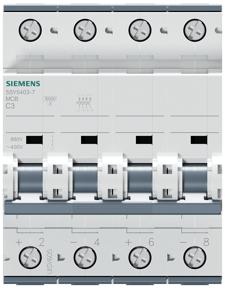 SIEMENS - Interruttore magnetotermico corrente universale DC 880 V AC 400 V 10 kA, a 4 poli, C, 3 A 5SY54037