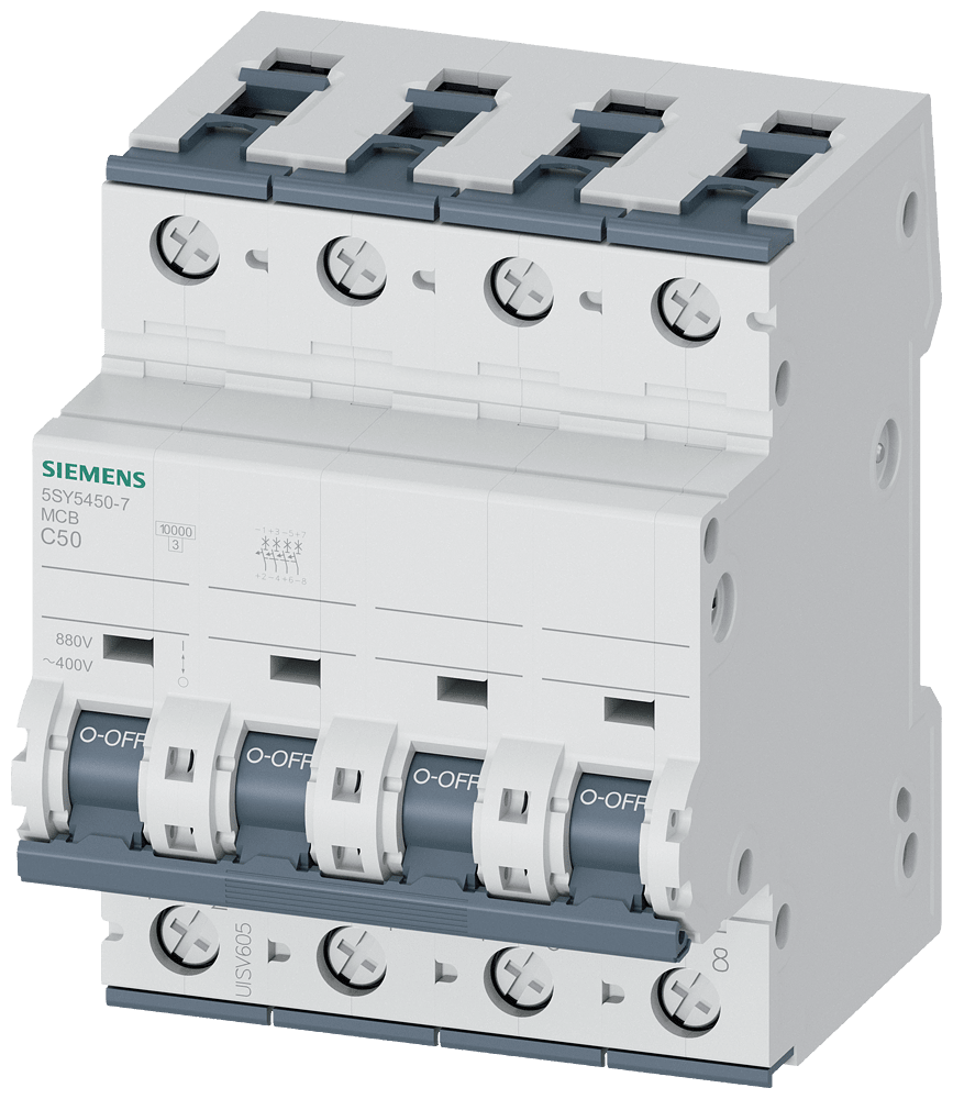 SIEMENS - Interruttore magnetotermico corrente universale DC 880 V AC 400 V 10 kA, a 4 poli, C, 50 A 5SY54507