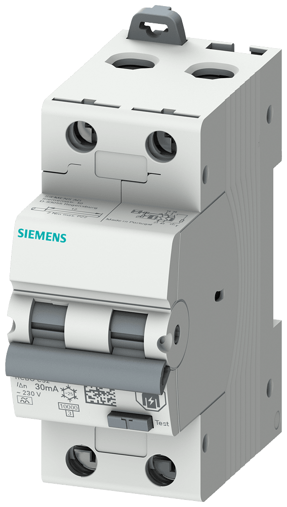 SIEMENS - Interruttore magnetotermico differenziale, 10 kA, a 2 poli, tipo A, 30 mA, car. B, In: 10 A Un: 230 V 5SU13246FP10