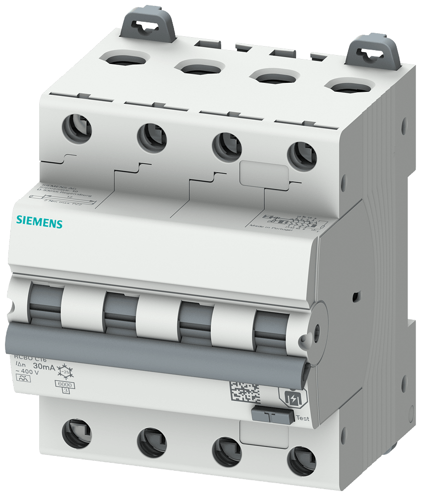 SIEMENS - Interruttore magnetotermico differenziale, 6 kA, a 4 poli, tipo A, 300 mA, car. C, In: 10 A Un: 400 V 5SU16467FP10