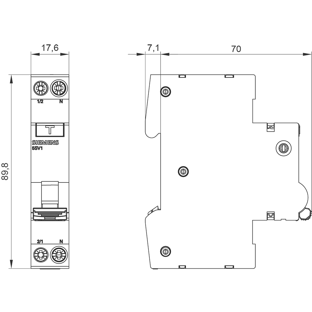 SIEMENS - Interruttore magnetotermico differenziale compatto 1P+N 4,5 kA tipo AC 30 mA C2 5SV13131KK02