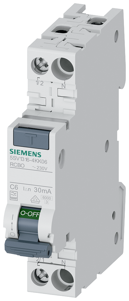 SIEMENS - Interruttore magnetotermico differenziale compatto 1P+N 6 kA tipo F 30 mA, super-resistente K, C6 5SV13164KK06