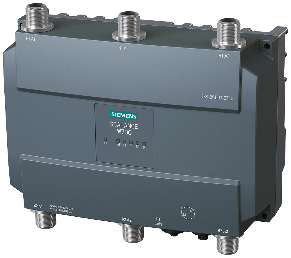 IWLAN Access Point, SCALANCE W788-2 M12 EEC, 2 raggi, 6 connessioni d'antenna N-CON, supporto iFeature via KEY-PLUG, IEEE 802.11a/b/g/h/n, 2,4/5 GHz, 450 Mbit/s lordi per radio, 1x M12 max. 1 Gbit/s, PoE, ridondante DC 24 V,A-coded M12 IP65, -40..+70°C, slot per plug, WPA2/802.11i/e,Conformal Coating EN 50155, EN 45545, osservare le omologazioni nazionali! ID cert.: RAPN-W2-M12-E3, comprende: MPCIE-R1-ABGN-U3, dotazione di fornitura: manuali su CD-ROM, tedesco/inglese, tappi di chiusura M12, Solo per il funzionamento in Israele SCALANCE W788-2 M12 EEC (ISR) 2x interfacce radio, 6x collegamenti per antenne N-CON, supporto iFeatures via KEY-PLUG, IEEE 802.11a/b/g/h/n, 2,4/5 GHz, lordo 450 Mbit/s per interfaccia radio, 1x M12 max. 1 Gbit/s, PoE, DC 24 V ridondante, M12 IP65 A-coded, -30 °C ... +70 °C, slot per plug, per il funzionamento in Israele. Access Point per l'interconnessione in rete wireless sul posto di sezioni di impianto con esigenza di ampie larghezze di banda. 1 pezzo. Access Point con due interfacce radio incorporate per la realizzazione di collegamenti radio con iFeatures (iPCF/iPCF-MC) tramite supporto di memoria rimovibile (plug). Le apparecchiature sono impiegabili in ambienti particolarmente gravosi e hanno l'omologazione per l'impiego nel settore del traffico stradale e ferroviario. Possono essere impiegate anche in una rete di Energy Distribution. Tecnologia MIMO 3x3 per collegamenti radio stabili, comunicazione wireless sicura fino a 450 Mbit/s tramite PROFINET con PROFIsafe. Le apparecchiature hanno l'omologazione EN 50155 per applicazioni ferroviarie, sono resistenti a urti e vibrazioni nonché a condensa. Grazie alle schede di circuito stampato verniciate (Conformal Coating) gli apparecchi possono essere impiegati anche in ambienti con forti oscillazioni di temperatura. Attivazione opzionale di funzioni aggiuntive (iFeatures) mediante supporto di memoria rimovibile (plug). In combinazione con un Plug speciale è possibile aumentare la sicurezza attivando Inter AP Blocking. Della gamma completa di accessori fanno parte un ampio portfolio di antenne, connettori, attrezzo spelafili, accessori di montaggio e di tecnica di cablaggio che completano il sistema.