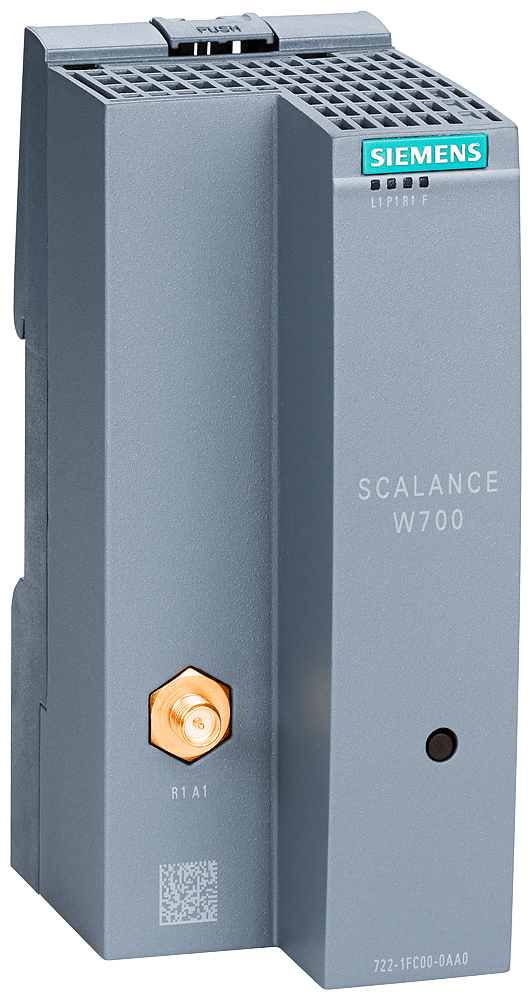 IWLAN Client, SCALANCE W721-1, RJ45, 1 interfaccia radio, 1 collegamento antenna R-SMA, IEEE 802.11a/b/g/h/n, 2,4/5 GHz, data rate lordo 150 Mbit/s, 1x RJ45 max. 100 Mbit/s, DC 24 V, blocco di fissaggio, IP20, 0... +55 °C, WPA2/802.11i/e, osservare le omologazioni nazionali! ID-Cert: ELN-W1-RJ-E1, FCC ID: LYHELN1V1, dotazione di fornitura: manuali su CD-ROM, tedesco/inglese, 1x blocco di fissaggio; solo per il funzionamento negli USA. SCALANCE W721-1 RJ45 (USA) 1x interfaccia radio, 1x collegamento per antenna R-SMA, IEEE 802.11a/b/g/h/n, 2,4/5GHz, data rate lordo 150 Mbit/s, 1x RJ45, max. 100 Mbit/s, DC 24 V, blocco morsetti, IP20, solo per il funzionamento negli USA. per l'integrazione di nodi/partner Industrial Ethernet in reti radio IWLAN a 2,4 GHz e 5GHz. 1 pezzo.le apparecchiature sono adatte sia per l'impiego nel quadro elettrico sia senza quadro elettrico in ambiente interno.Integrazione di componenti industriali, sezioni d'impianto in infrastrutture WLAN con data rate fino a 150 Mbit/s. Sostituzione economicamente vantaggiosa di linee cavi, forma costruttiva leggera e compatta per l'impiego efficiente su sistemi di trasporto automatici (AGV). Impiego salvaspazio nel quadro elettrico grazie al design SIMATIC. Montabile direttamente a fianco del SIMATIC ET 200SP. Particolarmente a prova di futuro grazie alla conformità con lo standard WLAN IEEE 802.11 riconosciuto a livello mondiale. Traffico dati prevedibile (funzionamento deterministico) e tempi di risposta definiti sul canale radio nonché collegamento radio affidabile. Inoltre risparmio di costi utilizzando un'unica rete radio. Ulteriori caratteristiche sono la semplice gestione tramite Web Server e SNMP.Della gamma completa di accessori fanno parte un ampio portafoglio di antenne, connettori, attrezzi spelafili, accessori di montaggio e di tecnica di cablaggio che completano il sistema.