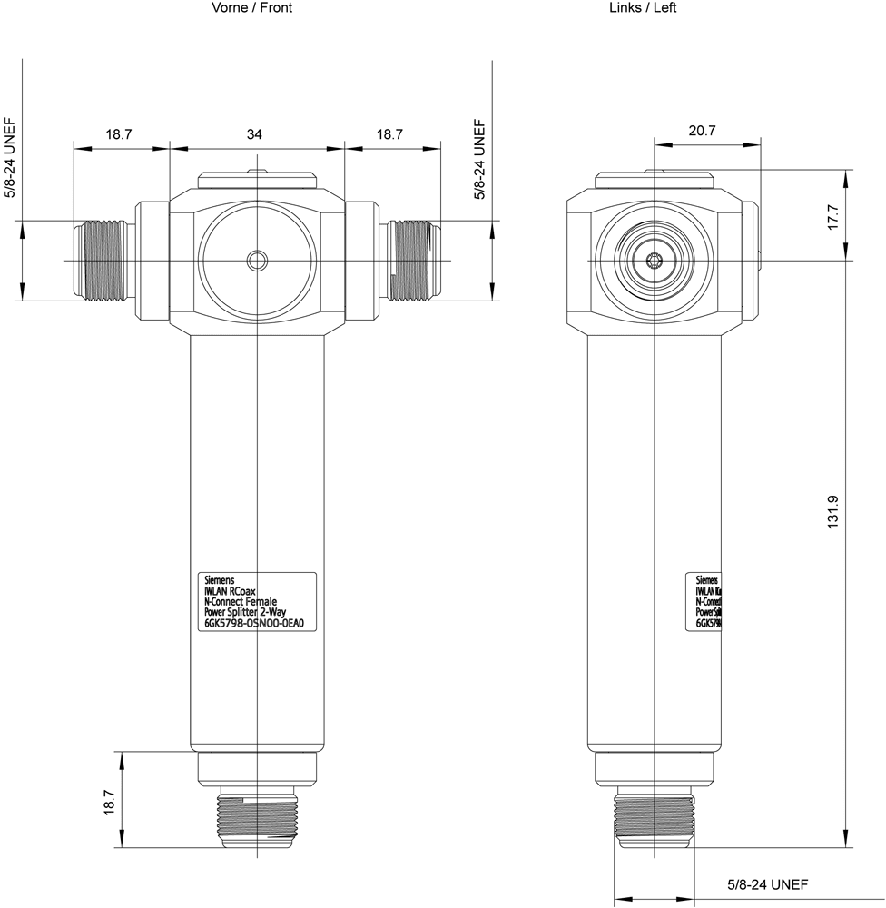 SIEMENS - IWLAN RCoax N-Connect female Power Splitter 2x, elemento a Y 2,4 e 5 GHz 6GK57980SN000EA0