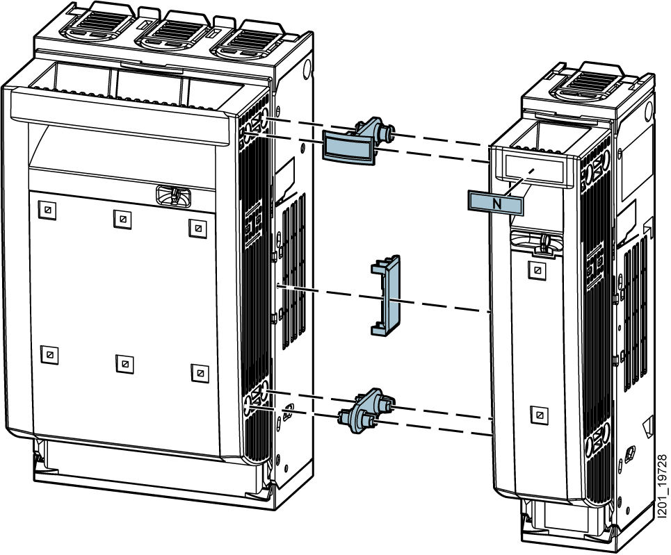 kit di montaggio, per il collegamento meccanico di 3NP1 a 1 e a 3 poli, per grandezze costruttive NH1 ... NH3 montaggio su base, accessori per sezionatore sottocarico a fusibili 3NP1 SENTRON 3NP19 come accessori per sezionatori sottocarico a fusibili 3NP1. Queste parti accessorie sono facili e comode da montare e collegare. Grazie alla protezione contro i contatti accidentali di serie, la sicurezza è garantita in modo affidabile durante l'installazione. Tecnica ottimale per la vostra sicurezza - solo da Siemens.
