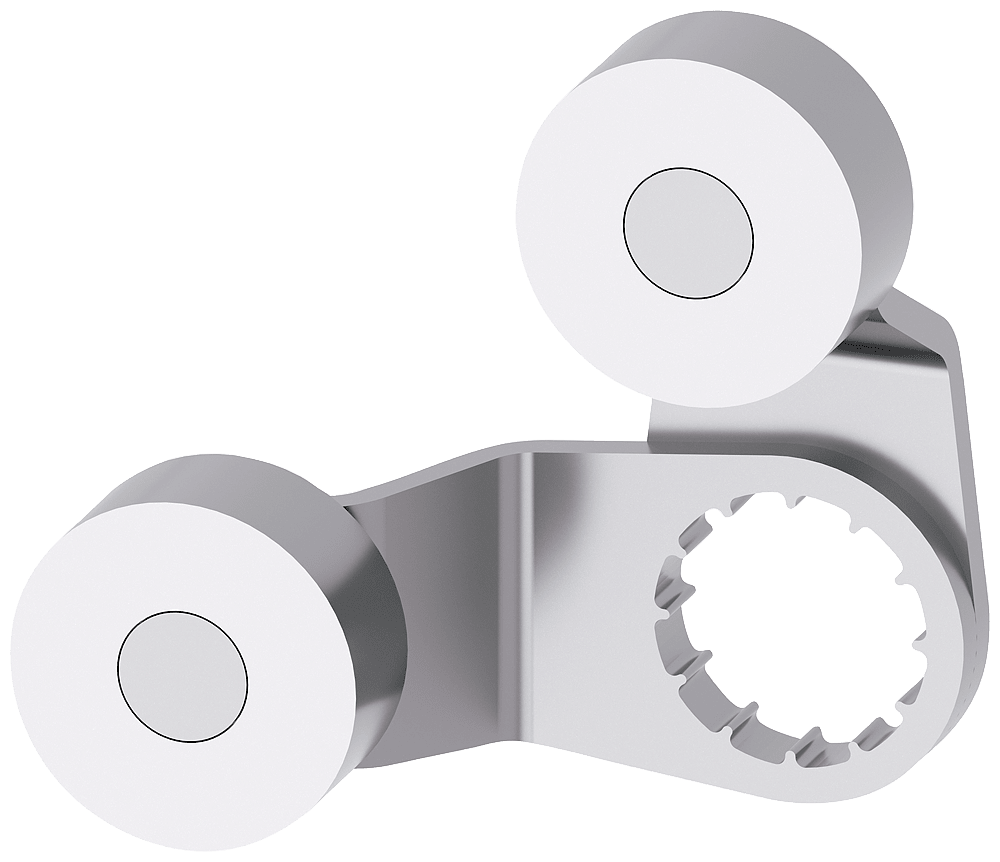 leva a forcella per interruttore di posizione 3SE51 2 x leve in metallo con ognuna con rotella in acciaio inox 19 mm per testina di comando 3SE5000-0AT10 leva per azionamento leva a forcella SIRIUS 3SE5 per il rilevamento di posizione di parti di macchina e per la sorveglianza della posizione di dispositivi di protezione. La struttura modulare degli interruttori di posizione 3SE5 consente una molteplicità di varianti con un numero ridotto di tipi da magazzino. L'ampia varietà di connettori e rotelle consente di soddisfare tutte le esigenze nella quotidianità industriale. LED segnalano lo stato attuale dell'apparecchio. Grazie alla tecnica di collegamento rapida i tempi di cablaggio risultano notevolmente ridotti. Punti di commutazione e fissaggio secondo EN 50047 e EN 50041. Gli apparecchi hanno omologazioni internazionali (IEC, UL). Con le corrispondenti configurazioni di interruttore si possono soddisfare i massimi requisiti di sicurezza secondo PL e o SIL 3. L'elettronica ASIsafe integrata comporta un ridotto assorbimento di corrente. Sono disponibili diverse grandezze di custodia, con diversi contatti, in plastica o in metallo o in forma costruttiva compatta. Alcune varianti sono disponibili opzionalmente con visualizzazione di stato a LED e connettore M12. La serie 3SF1 con collegamento diretto al sistema di bus AS-Interface completa la gamma di prodotti. Come accessori sono disponibili, a seconda dell'esecuzione, testine di comando e connettori nonché ulteriori accessori di montaggio/collegamento. Safety is a SIRIUS business.