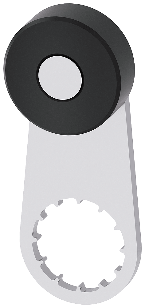 leva girevole per interruttori di posizione 3SE51/52 leva in metallo, lunga 30 mm con rotella in plastica 19 mm rotella montata capovolta ruotata di 180° sul lato posteriore della leva leva per comando rotativo SIRIUS 3SE5 per il rilevamento di posizione di parti di macchina e per la sorveglianza della posizione di dispositivi di protezione. La struttura modulare degli interruttori di posizione 3SE5 consente una molteplicità di varianti con un numero ridotto di tipi da magazzino. L'ampia varietà di connettori e rotelle consente di soddisfare tutte le esigenze nella quotidianità industriale. LED segnalano lo stato attuale dell'apparecchio. Grazie alla tecnica di collegamento rapida i tempi di cablaggio risultano notevolmente ridotti. Punti di commutazione e fissaggio secondo EN 50047 e EN 50041. Gli apparecchi hanno omologazioni internazionali (IEC, UL). Con le corrispondenti configurazioni di interruttore si possono soddisfare i massimi requisiti di sicurezza secondo PL e o SIL 3. L'elettronica ASIsafe integrata comporta un ridotto assorbimento di corrente. Sono disponibili diverse grandezze di custodia, con diversi contatti, in plastica o in metallo o in forma costruttiva compatta. Alcunevarianti sono disponibili opzionalmente con visualizzazione di stato a LED e connettore M12. La serie 3SF1 con collegamento diretto al sistema di bus AS-Interface completa la gamma di prodotti. Come accessori sono disponibili, a seconda dell'esecuzione, testine di comando e connettori nonché ulteriori accessori di montaggio/collegamento. Safety is a SIRIUS business.
