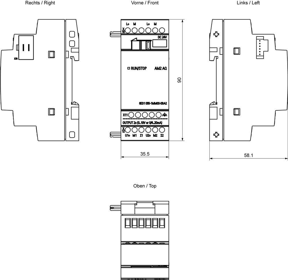 SIEMENS - LOGO! AM2 AQ 0 ... 10 V, 0/4 ... 20 mA per LOGO! 8 6ED10551MM000BA2