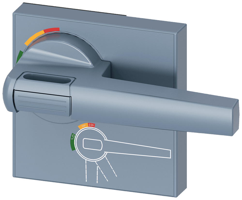 maniglia per comando rotativo bloccoporta standard accessori per interruttori automatici 3VA27 (leva di comando interruttore) Comandi manuali per un comodo utilizzo dell'interruttore automatico scatolato 3VA. Disponibilità come comando rotativo frontale, per porta e parete laterale con diverse possibilità di chiusura a chiave e con interblocco Le manopole sono disponibili nelle varianti standard e ARRESTO DI EMERGENZA, ciascuna con o senza kit di illuminazione. Interruttori automatici scatolati SENTRON 3VA - Un sistema. Per tutte le applicazioni.