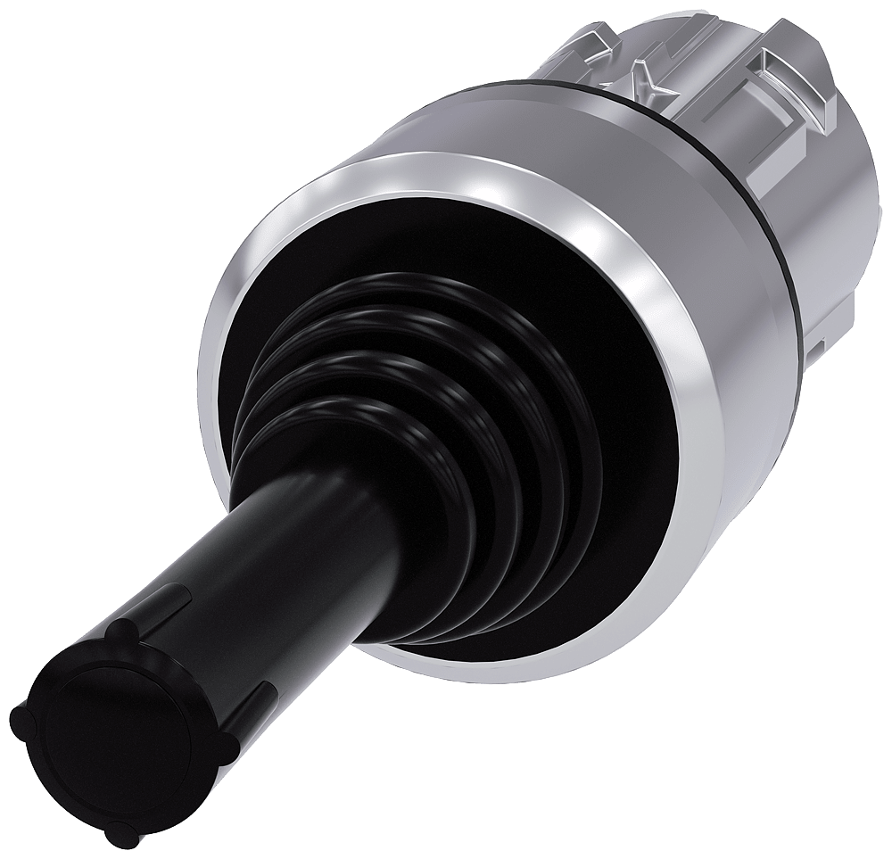 manipolatore joystick, 22 mm, rotondo, in metallo lucido, nero, 2 posizioni di commutazione, a impulso con movimento verticale, senza blocco meccanico Manipolatore joystick SIRIUS ACT per semplici compiti di navigazione. Siemens offre, sotto il nome commerciale SIRIUS ACT, un portfolio esclusivo di dispositivi di comando e segnalazione con omologazioni di prodotto per il mercato mondiale in tre moderne serie di design in robusto metallo puro e plastica pregiata.L'innovativo concetto di innesto a scatto semplifica talmente il montaggio che per eseguirlo basta una sola mano e non servono attrezzi speciali. Per i fori di montaggio sono sufficienti semplici fori non scanalati, essendo già integrata una protezione antirotazione al 100 %.Grazie al grado di protezione elevato i robusti apparecchi sono adatti all'impiego industriale e in ambiente esterno. È persino possibile la pulizia con getto ad alta pressione. Né polvere, né oli, né liscivia possono comprometterne il funzionamento affidabile.Oltre che con il cablaggio standard, gli apparecchi possono essere collegati al controllore anche tramite PROFINET, AS-Interface oppure IO-Link. Potete così ridurre il vostro onere di cablaggio, minimizzare le fonti di errore e ottenere maggiore flessibilità.Il configuratore online grafico supporta in modo confortevole la scelta e l'ordinazione di singoli apparecchi, pulsantiere e iscrizioni. È disponibile una documentazione completa (ad es. manuale, dati 3D, schema di collegamento). Esecuzioni fornibili: 2/4 posizioni di commutazione, comando permanente/ad impulso. Avvertenza: Apparecchio singolo, supporti e moduli devono essere ordinati separatamente. SIRIUS ACT - Performance in Action nel comando e nella segnalazione. Semplici da montare, altamente performanti, semplicemente perfetti.