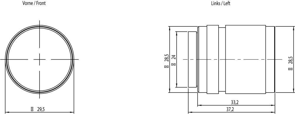 mini-obiettivo 16 mm, 1: 1,4 con distanza focale fissa, apertura diaframma e fuoco regolabile D=29,5mm, L=37,2mm .