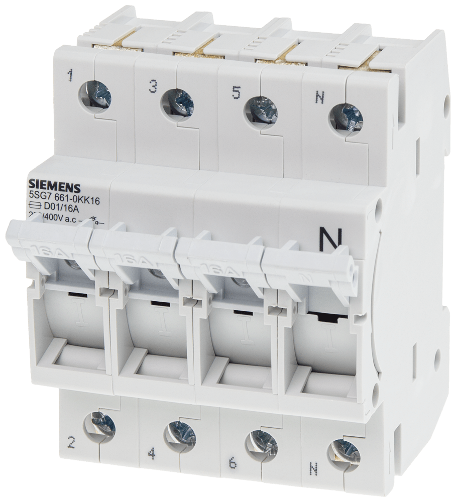 SIEMENS - MINIZED, sezionatore sottocarico a fusibile, D01, a 4 poli, 3P+N, In: 16 A, Un AC: 400 V 5SG76610KK16