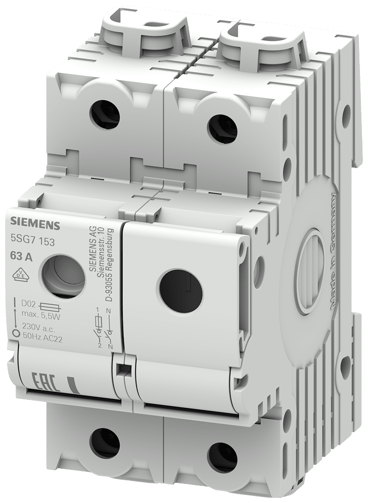 SIEMENS - MINIZED, sezionatore sottocarico con fusibile, D02, 1P+N, In: 63 A, Un AC: 230 V