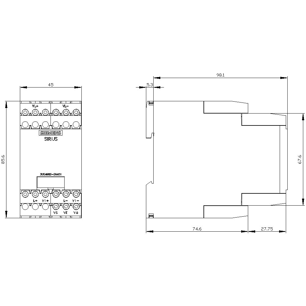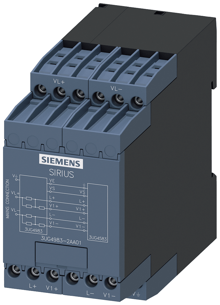 modulo accessorio di accoppiamento per relè di controllo di isolamento 3UG4583 per ampliamento del campo di tensione di rete a AC 690 V e DC 1000 V morsetti a molla (push-in) Relè SIRIUS - un programma per ogni evenienza.