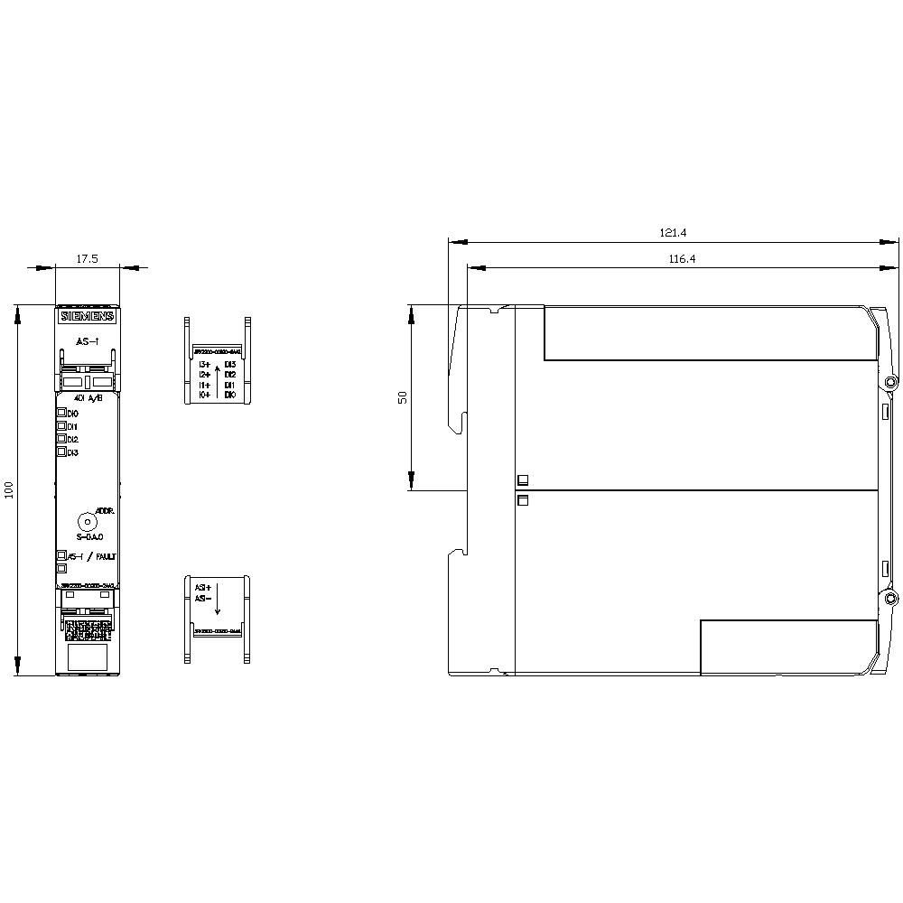 SIEMENS - Modulo ASi SlimLine Compact A/B Slave 4DI, IP20, 4 x ingressi per sensori a 2 conduttori 17,5 mm 3RK22000CG002AA2
