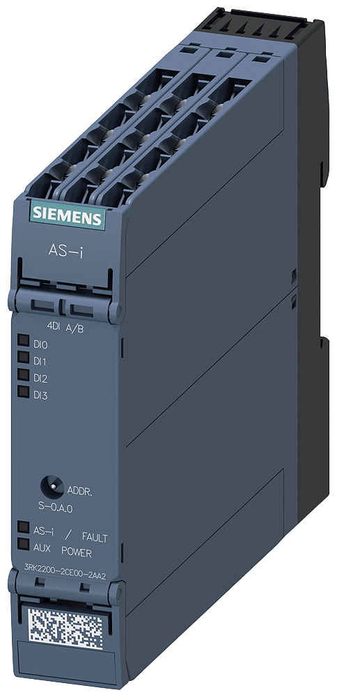 SIEMENS - Modulo ASi SlimLine Compact A/B Slave 4DI, IP20, 4 x ingressi per sensori a 3 conduttori 22,5 mm 3RK22002CE002AA2