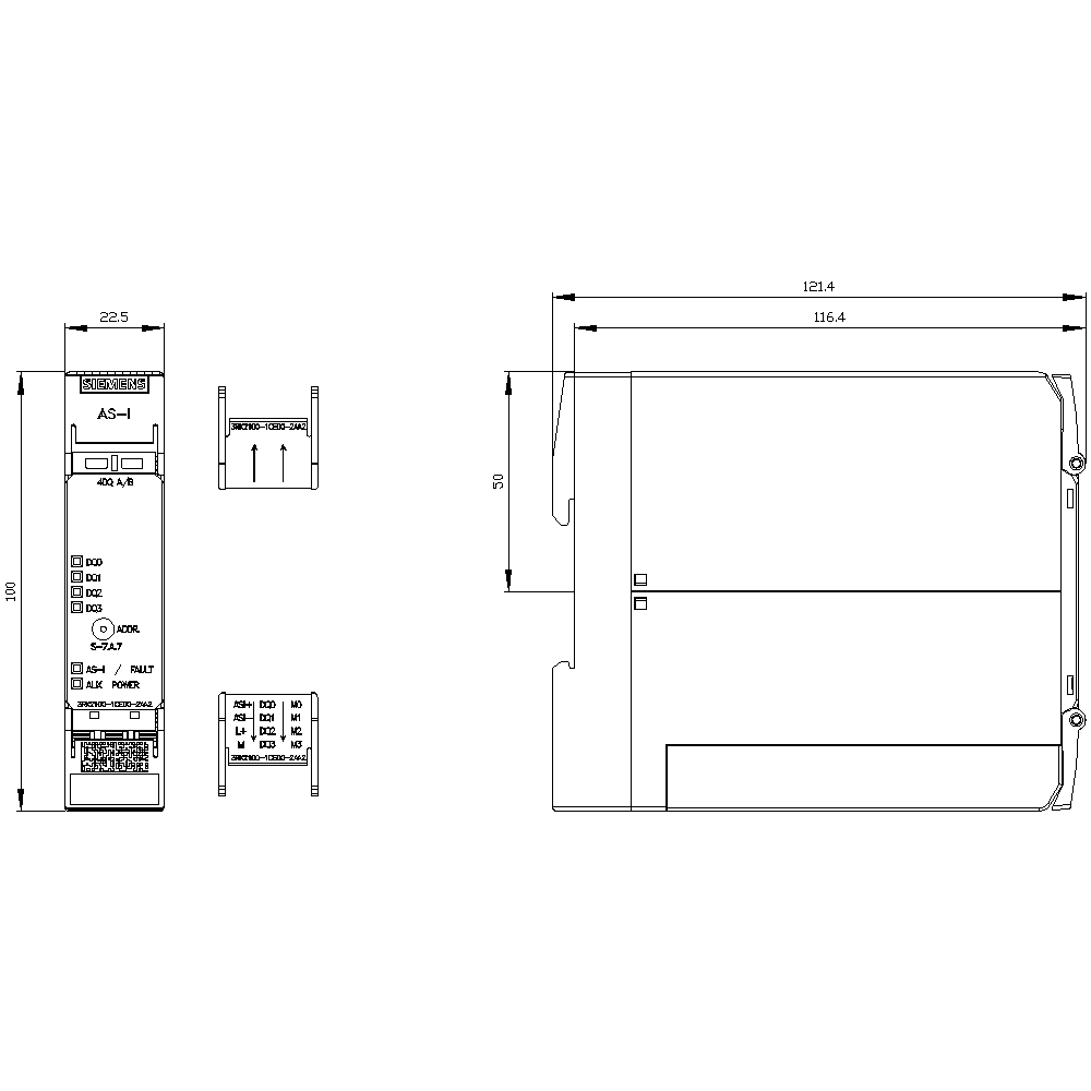 SIEMENS - Modulo ASi SlimLine Compact A/B Slave 4DQ, IP20, 4 x uscite, 2 A, DC 24 V max. 4 A 3RK21001CE002AA2