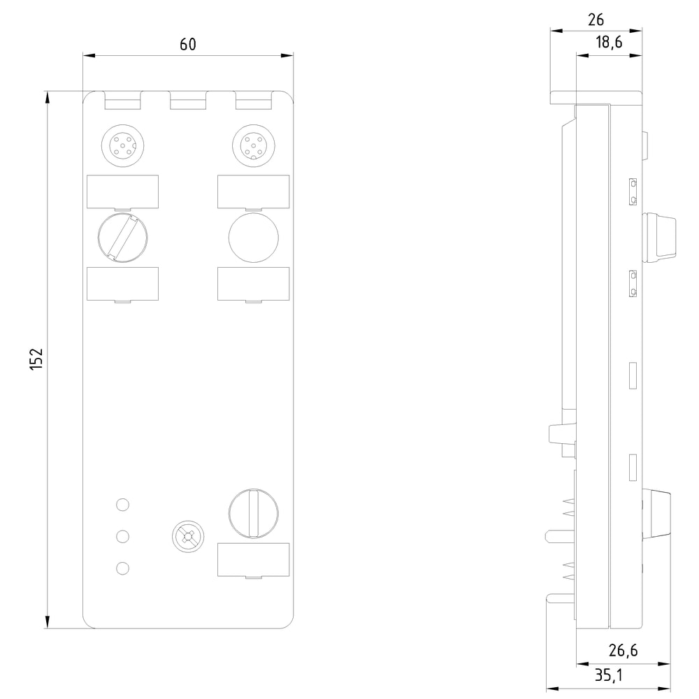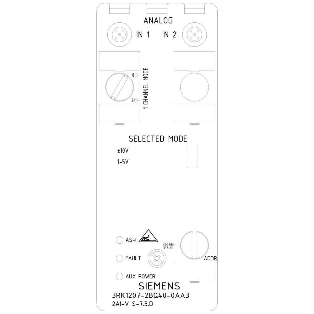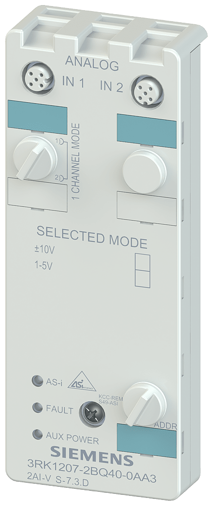 SIEMENS - Modulo compatto AS-i, IP67, analogico, 2AI, formato numerico S7, 2 x ingressi (M12), +/-10 V 3RK12072BQ400AA3