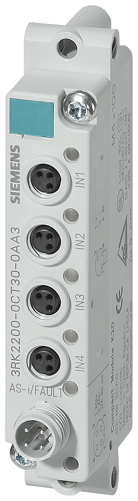 SIEMENS - Modulo compatto AS-i K20, slave A/B (specifica 3.0), IP67, digitale, 4DO, 4 x uscite, 1 A 3RK21001CT300AA3