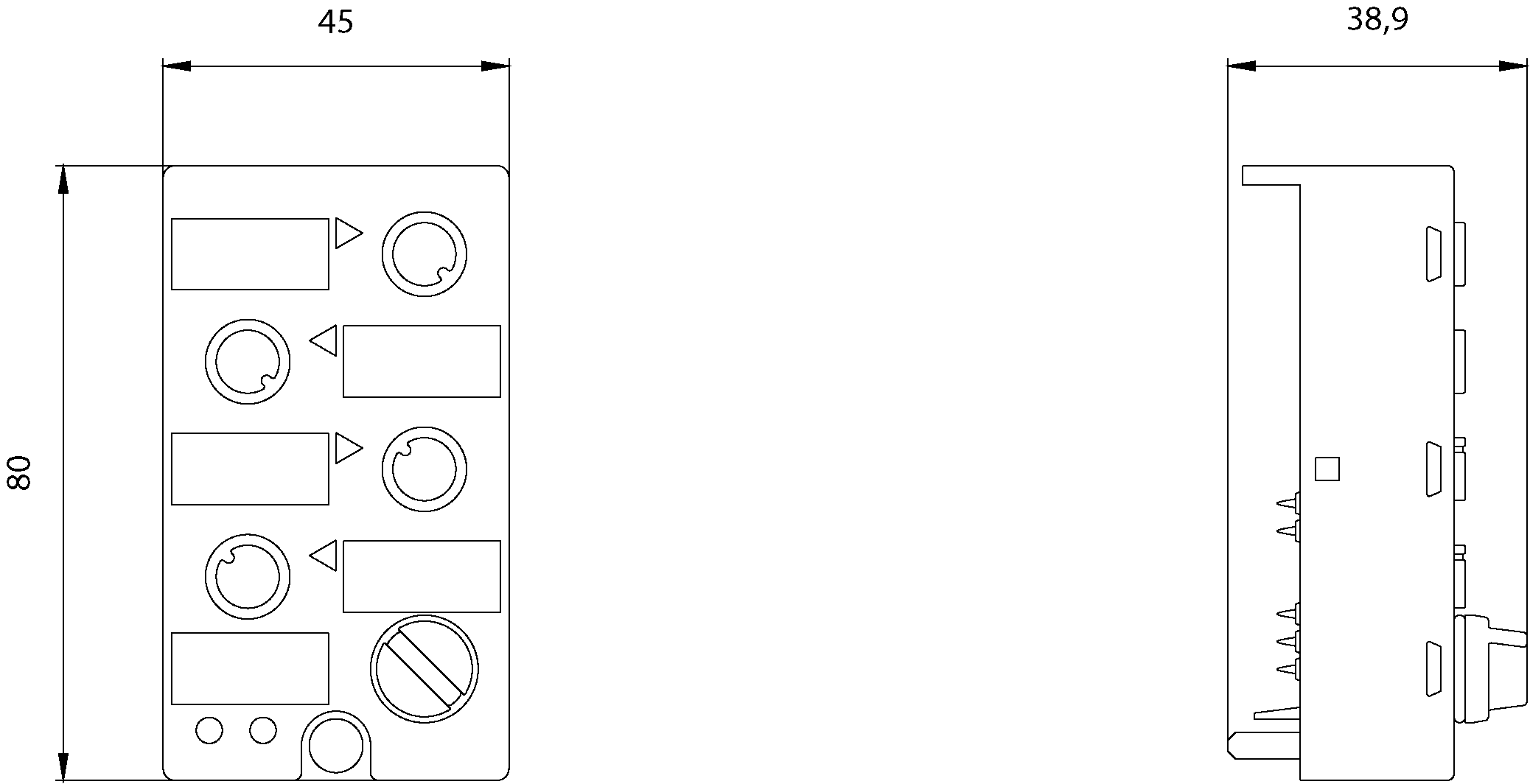 SIEMENS - Modulo compatto AS-i K45, slave A/B, digitale, 2 x 2DI, IP67, 2 x 2 ingressi, max. 200 mA 3RK22000CQ220AA3
