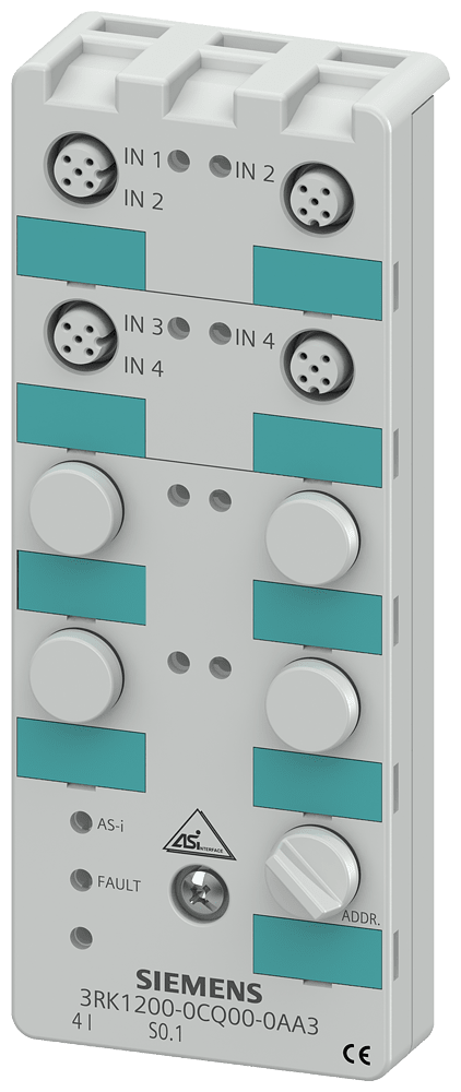 SIEMENS - Modulo compatto AS-i K60, digitale, 4DI, IP67, 4 x 1 ingressi, max. 200 mA 3RK12000CQ000AA3