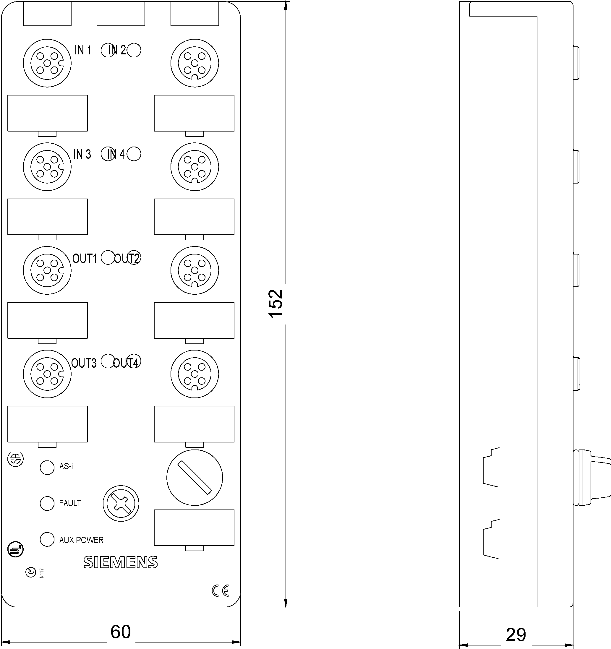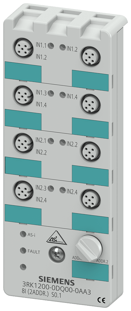 SIEMENS - Modulo compatto AS-i K60, digitale, 8DI, IP67, 8 x 1 ingressi, max. 200 mA 3RK12000DQ000AA3