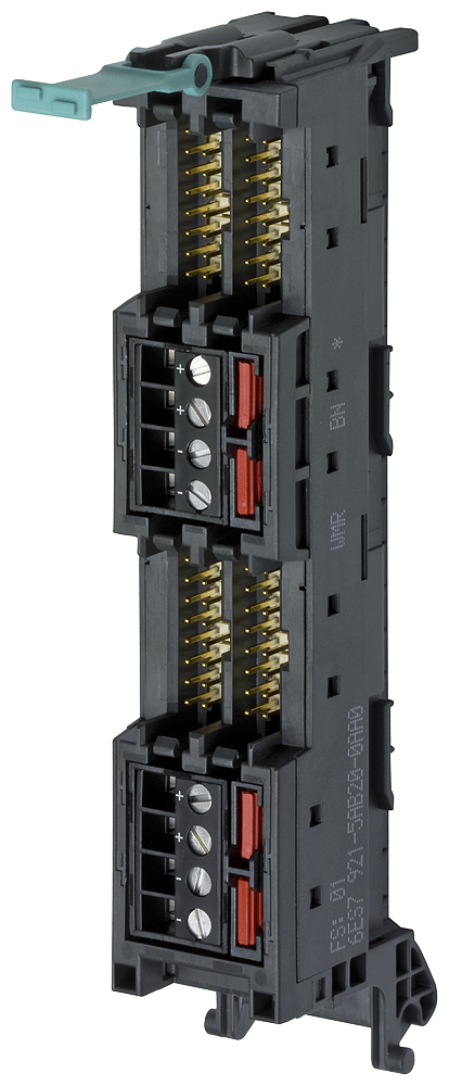 modulo connettore frontale con 4 x 16 poli connessione IDC per (digitali) 32 unità I/O dell'S7-1500, alimentazione di potenziale tramite morsetti a vite Il modulo connettore frontale per SIMATIC S7-1500 con morsetti a vite per l'alimentazione di potenziale, per il collegamento di cavi a 16 poli è un connettore frontale modificato per il collegamento ad una unità I/O digitale. Questo viene innestato sull'unità da cablare al posto del connettore frontale. Qui vengono innestati i cavi di collegamento e quindi collegati con il modulo di connessione. Questo modulo connettore frontale modificato è parte integrante del collegamento completamente modulare di SIMATIC TOP connect per il cablaggio di sistema più rapido e più sicuro. Oltre ad un ridotto onere di cablaggio è possibile una riduzione significativa delle fonti di errori. I sensori e gli attuatori della periferia vengono addotti ai moduli di connessione di SIMATIC TOP connect e da questi, tramite cavo di collegamento e modulo connettore frontale, collegati con il SIMATIC S7-1500.