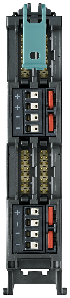 modulo connettore frontale con 4 x 16 poli connessione IDC per (digitali) 32 unità I/O dell'S7-1500, alimentazione di potenziale tramite morsetto push-in Il modulo connettore frontale per SIMATIC S7-1500 con morsetti push-in per l'alimentazione di potenziale, per il collegamento di cavi a 16 poli è un connettore frontale modificato per il collegamento ad una unità I/O digitale. Questo viene innestato sull'unità da cablare al posto del connettore frontale. Qui vengono innestati i cavi di collegamento e quindi collegati con il modulo di connessione. Questo modulo connettore frontale modificato è parte integrante del collegamento completamente modulare di SIMATIC TOP connect per il cablaggio di sistema più rapido e più sicuro. Oltre ad un ridotto onere di cablaggio è possibile una riduzione significativa delle fonti di errori. I sensori e gli attuatori della periferia vengono addotti ai moduli di connessione di SIMATIC TOP connect e da questi, tramite cavo di collegamento e modulo connettore frontale, collegati con il SIMATIC S7-1500.