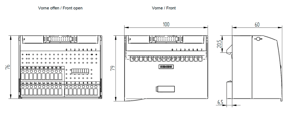SIEMENS - Modulo di collegamento dig., TP3 a 3 fili, 8 I/O, a vite / interruttore, LED