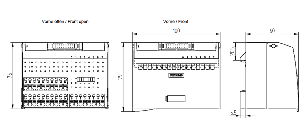SIEMENS - Modulo di collegamento dig., TP3 a 3 fili, 8 I/O, push-in / interruttore, LED 6ES79240CH200BC0