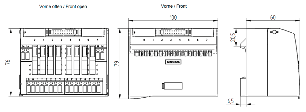 SIEMENS - Modulo di collegamento dig., TPRo a relè contatto NO, 8 O, a vite, LED 6ES79240BD200BA0