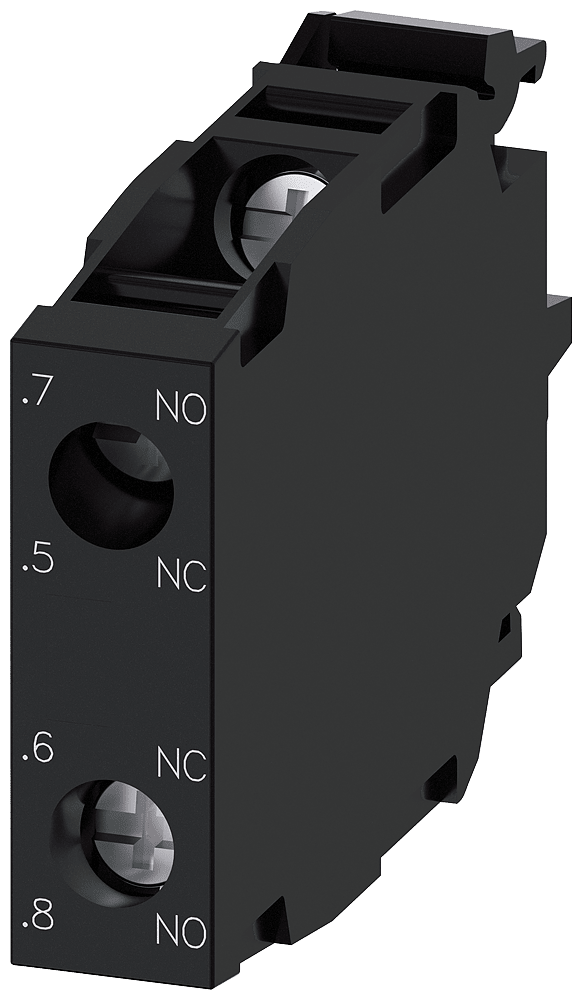 modulo di contatti con 2 contatti, 1NO anticipato + 1NC ritardato, morsetto a vite, Per montaggio su piastra frontale Modulo di contatti SIRIUS ACT per la commutazione di circuiti ausiliari. Siemens offre, sotto il nome commerciale SIRIUS ACT, un portfolio esclusivo di dispositivi di comando e segnalazione con omologazioni di prodotto per il mercato mondiale in tre moderne serie di design in robusto metallo puro e plastica pregiata.L'innovativo concetto di innesto a scatto semplifica talmente il montaggio che per eseguirlo basta una sola mano e non servono attrezzi speciali. Per i fori di montaggio sono sufficienti semplici fori non scanalati, essendo già integrata una protezione antirotazione al 100 %.Grazie al grado di protezione elevato i robusti apparecchi sono adatti all'impiego industriale e in ambiente esterno. È persino possibile la pulizia con getto ad alta pressione. Né polvere, né oli, né liscivia possono comprometterne il funzionamento affidabile.Oltre che con il cablaggio standard, gli apparecchi possono essere collegati al controllore anche tramite PROFINET, AS-Interface oppure IO-Link. Potete così ridurre il vostro onere di cablaggio, minimizzare le fonti di errore e ottenere maggiore flessibilità.Il configuratore online grafico supporta in modo confortevole la scelta e l'ordinazione di singoli apparecchi, pulsantiere e iscrizioni. È disponibile una documentazione completa (ad es. manuale, dati 3D, schema di collegamento). Esecuzioni fornibili: diverse funzioni di commutazione, diversi tipi di collegamento e montaggio, a 1 e 2 poli. SIRIUS ACT - Performance in Action nel comando e nella segnalazione. Semplici da montare, altamente performanti, semplicemente perfetti.