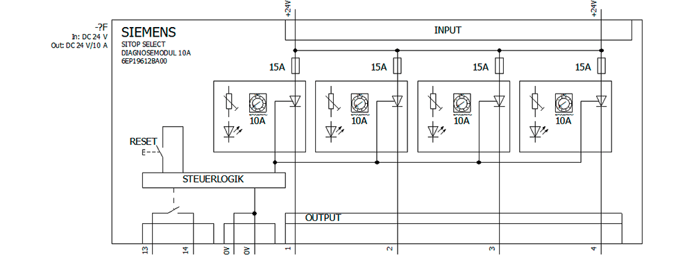 SIEMENS - Modulo di diagnostica SITOP select, DC 24 V/4 x 2 ... 10 A 6EP19612BA00
