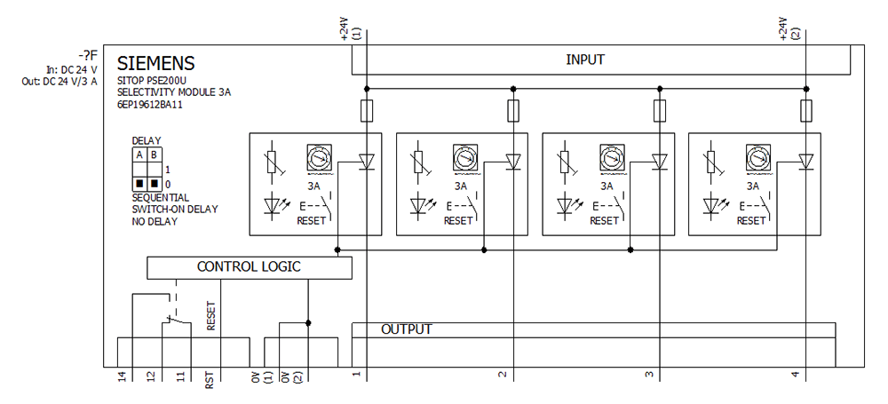 SIEMENS - Modulo selettivo SITOP PSE200U, DC24V/4x 0,5 ... 3 A con cont. di segnal. cumul. 6EP19612BA11