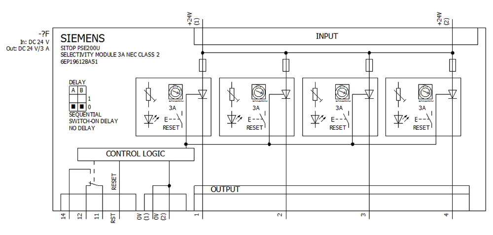 SIEMENS - Modulo selettivo SITOP PSE200U, DC24V/4x 0,5 ... 3 A con cont. di segnal. cumul. 6EP19612BA51