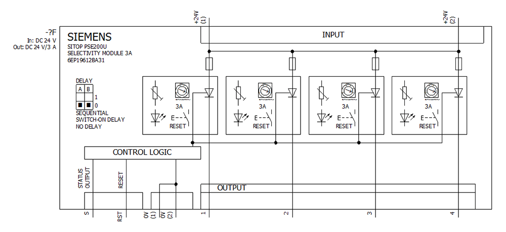 SIEMENS - Modulo selettivo SITOP PSE200U, DC24V/4x 0,5 ... 3A con segnalaz. singolo canale 6EP19612BA31