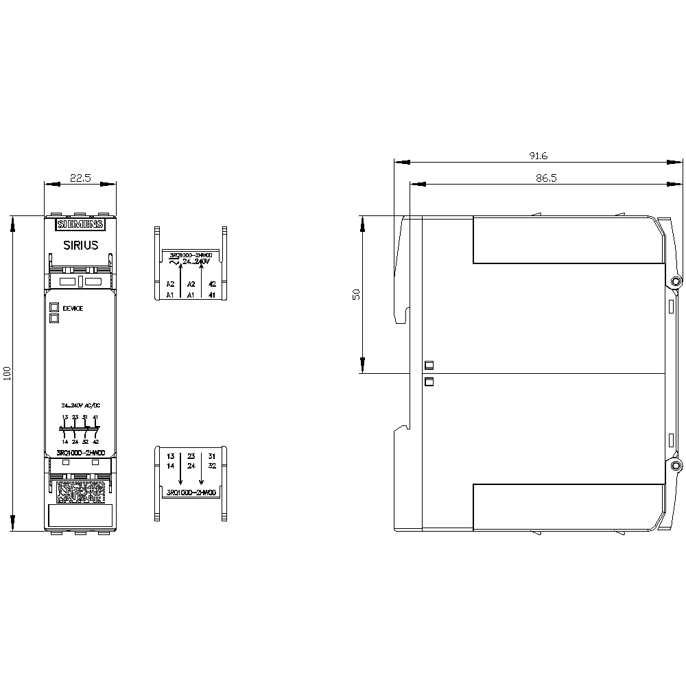 SIEMENS - Morsetti dinterfaccia a relè a guida forzata, 2NO+2NC, AC/DC 24 ... 240 V, morsetti a molla, SIL 2/PL c 3RQ10002HW00