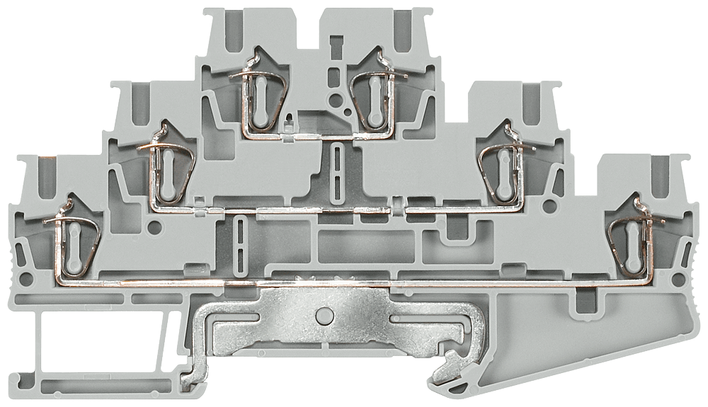 morsetto, morsetti a molla, a tre piani PE/L/N, 2,5mm², grigio Tecnica di collegamento con morsetti combinabili per diverse applicazioni industriali e tecnica di installazione moderna di Siemens. Si può decidere indifferentemente se impiegare la tecnica di collegamento a vite, a molla, push-in oppure la tecnica di collegamento rapida: tutte le tecniche di collegamento sono liberamente combinabili tra di loro. Gli accessori per iscrizione e prova sono standardizzati e utilizzabili trasversalmente. Con i morsetti combinabili di Siemens si possono realizzare molte applicazioni in edifici industriali, funzionali e residenziali. È così disponibile la tecnica di collegamento adatta per ogni esigenza! I morsetti combinabili Siemens si contraddistinguono soprattutto per le seguenti caratteristiche: 1. Contatto sicuro e durevole. 2. Collegamenti elettrici facili da sciogliere come cavi e conduttori. 3. Realizzazione di una molteplicità di applicazioni. 4. Tecnica di montaggio e tecnica di collegamento comode e semplici. 5. Ampia gamma di accessori standardizzati. 6. Sicurezza affidabile durante l'installazione grazie alla protezione contro i contatti accidentali come standard di serie. 7. Tecnica ottimale per la vostra sicurezza - solo da Siemens.