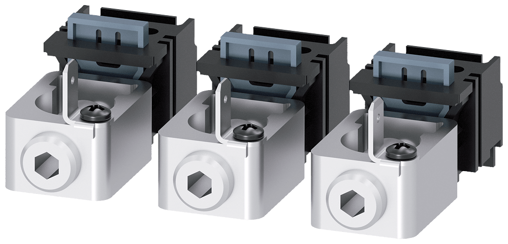 morsetto di collegamento per conduttore circolare TA1.1 10…95 mm² con presa di tensione per conduttore ausiliario 3 pezzi accessori per: 3VA10/11 Interruttori automatici scatolati SENTRON 3VA - un sistema. Per tutte le applicazioni.