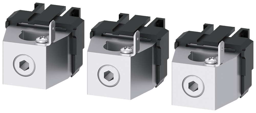 morsetto di collegamento per conduttore circolare TC1.3 14 AWG…1/0 Cu 3 pz. con presa di tensione per conduttore ausiliario 3 pezzi accessori per: 3VA52 Interruttori automatici scatolati SENTRON 3VA - un sistema. Per tutte le applicazioni.