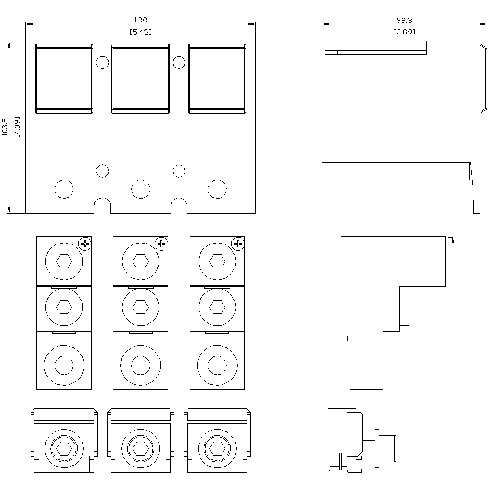 morsetto di collegamento per conduttore circolare TA2.4 2 x 2/0…600 kcmil con morsetto di collegamento del conduttore ausiliario; per 2 cavi; 3 pz.; incl. calotta coprimorsetti allungata con fori per il controllo della tensione; accessori per: 3VA53/54; 3VA63/64 zoccolo in esecuzione rimovibile/estraibile 3VA3/64 Interruttori automatici scatolati SENTRON 3VA - un sistema. Per tutte le applicazioni.