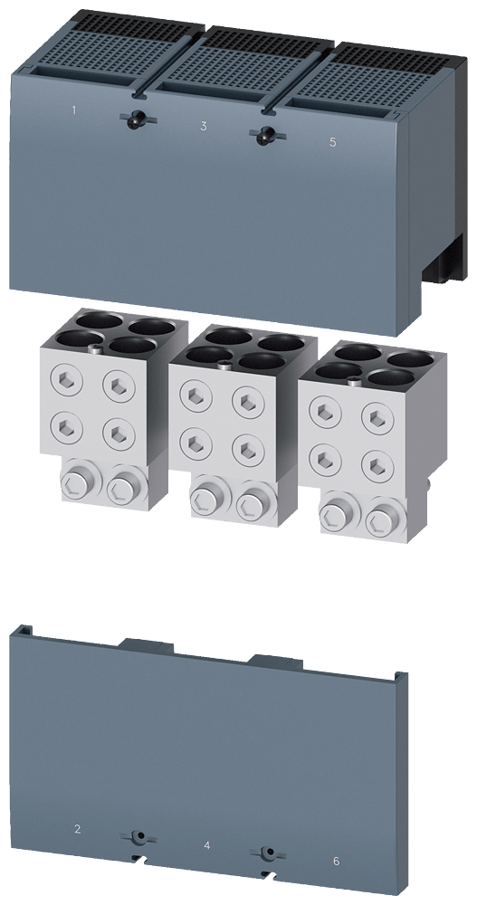 morsetto di collegamento per conduttore circolare TA4.4 4 x 4/0…600kcmil con presa di tensione per conduttore ausiliario per 4 cavi; 3 pz. accessori per: 3VA55; 3VA65/66 Interruttori automatici scatolati SENTRON 3VA - un sistema. Per tutte le applicazioni.