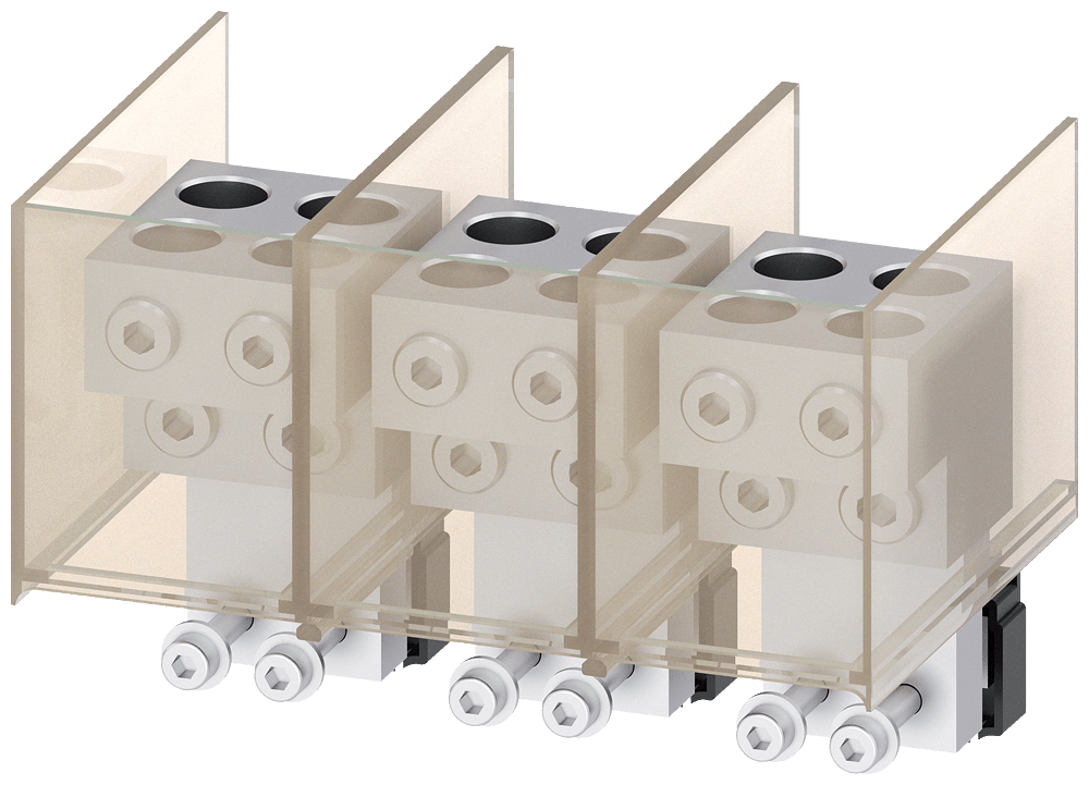 morsetto di collegamento per conduttore circolare TA6.3 4 x 1/0…500 kcmil per interruttore automatico 100% nominale per 4 cavi; 3 pz. accessori per: interruttori automatici a 3 poli 3VA57/67 Interruttori automatici scatolati SENTRON 3VA - un sistema. Per tutte le applicazioni.