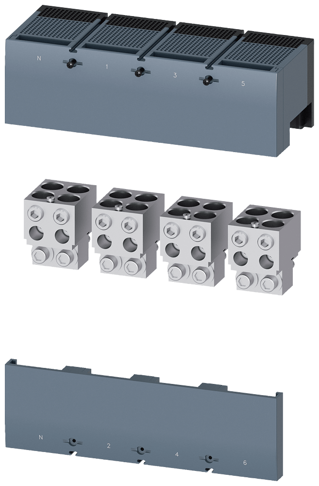 SIEMENS - Morsetto di collegamento per conduttore tondo TC4.3 4x 4/0 - 500kcmil Cu, per 4 cavi, 4 pezzi