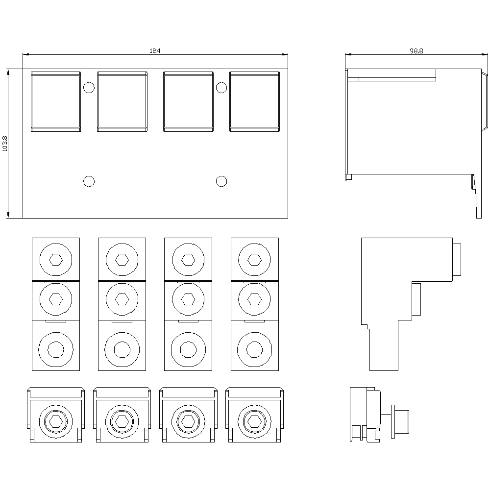 SIEMENS - Morsetto per conduttori tondi, 2 cavi, 4 pezzi, per 3VA5/6 400/600 3VA94740JJ23
