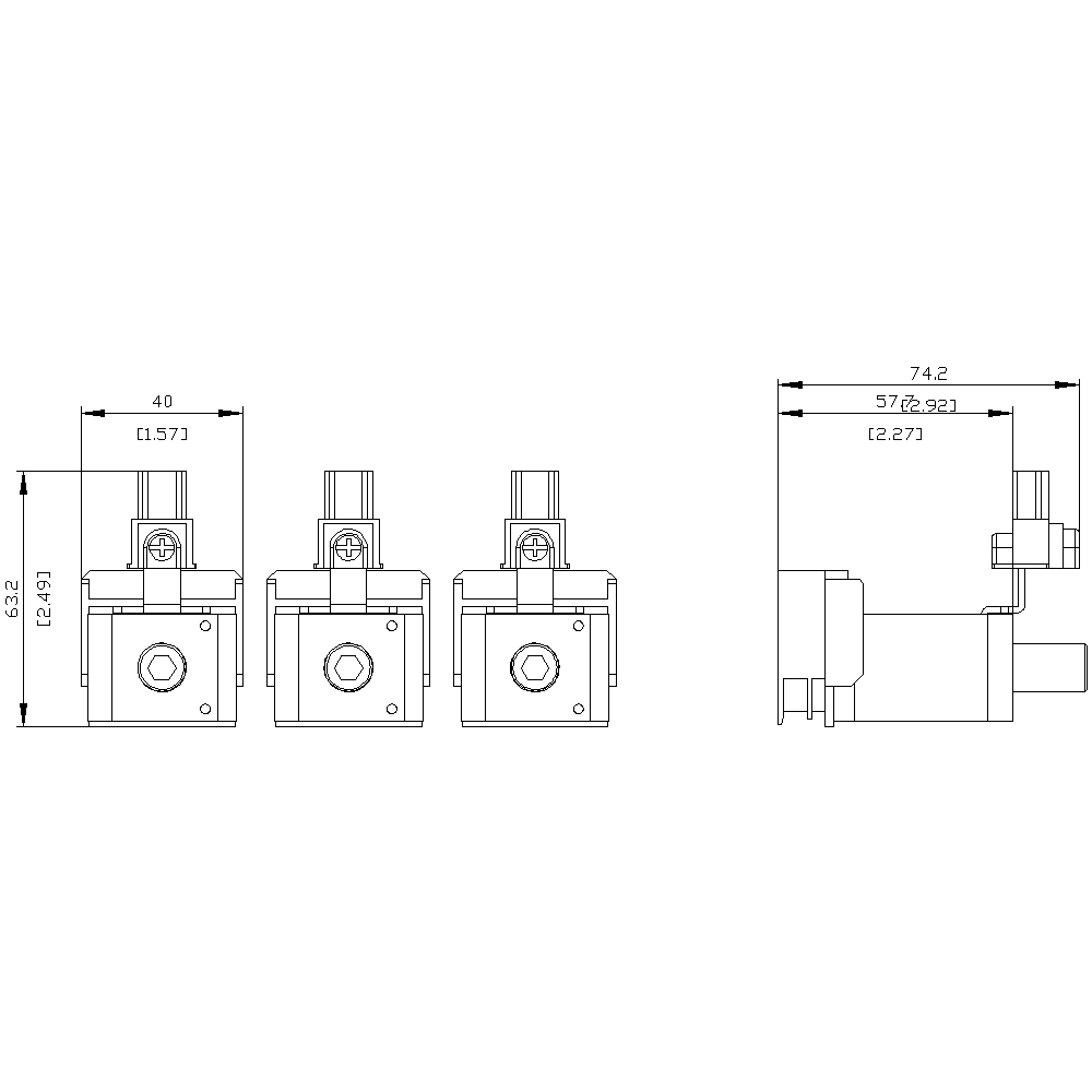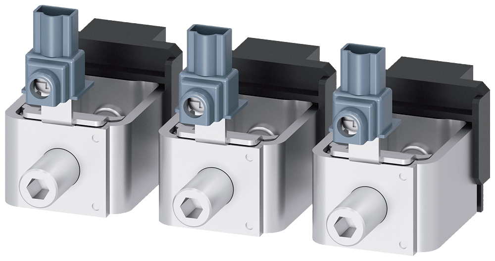 morsetto serracavo TS1.5 3 pezzi 1/0…500 kcmil con presa di tensione per conduttore ausiliario 3 pz. accessori per: 3VA53/54; 3VA63/64 Interruttori automatici scatolati SENTRON 3VA - un sistema. Per tutte le applicazioni.